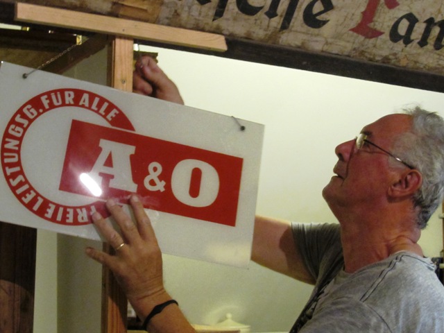 Das Banner wird angebracht 17. April 2014 Nach umfangreichen Vorbereitungen wurde am 17. April mit vereinten Kräften der Masten mit dem Museumsbanner an der Vorderfront des Museums aufgestellt. Das Heimatmuseum kann so noch leichter von ortsfremden Besuchern gefunden werden. |